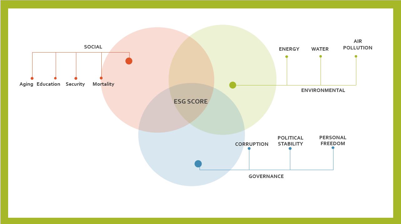 The ESG Country Sustainability Ranking model has been created by using common indexes that are an easily verifiable source.
